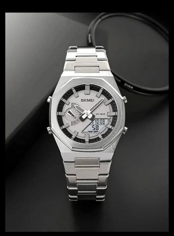 Skmei - 1816 - Dual Display luminous waterproofs 50+ timezone - Silver White